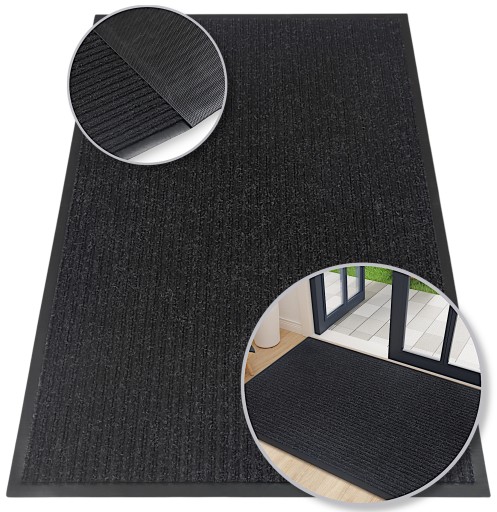 Monet to wysokiej jakości wycieraczki o bardzo szerokim zastosowaniu. Dzięki strukturze typu prążek, doskonale zbierają wszelkiego rodzaju zanieczyszczenia takie jak błoto, woda czy śnieg. Są przy tym łatwe w czyszczeniu, a także odporne na długotrwałe i intensywne użytkowanie. Spód wykonany z miękkiego tworzywa PVC, sprawia że wycieraczka trwale przylega do podłoża i nie przesuwa się. Monet mogą być używane zarówno wewnątrz pomieszczeń, jak i na zewnątrz. Świetnie sprawdzą się w domu, biurze, instytucji czy firmie. Wycieraczki posiadają gumowy margines o szerokości ko 1,5 cm, dzięki czemu nie odkształcają się, a warstwa tekstylna nie strzępi się.