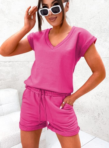 Wygodny komplet dresowy składający się z szortów i T-shirta.
