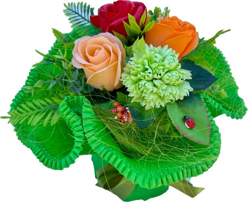 - dodatki zielone, które sprawiają, że bukiet wygląda jak żywy,