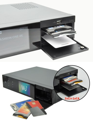 Z innych ważnych cech, poza wspomnianymi już dwoma gniazdami na wymienne głowice FBC oraz jednym czytnikiem kart i dwoma gniazdami na moduły CAM CI/CI+ warto wymienić także nowoczesny kolorowy wyświetlacz LCD 3,5'' (wspiera funkcję Mini TV, w Ultimo 4K jest nieco większy - 4''), możliwość instalacji dysku twardego 2,5'' w obudowie za pomocą montażu go w specjalnej wysuwanej kieszeni, 3 porty USB (w tym dwa w wersji 3.0 i jeden 2.0), wejście i wyjście HDMI 2.0, wbudowaną obsługę gigabitowego Ethernet, bezprzewodowego Wi-Fi oraz Bluetooth i programową obsługę HbbTV.