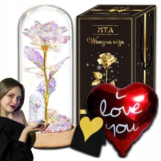 ➡️ WIECZNA RÓŻA W SZKLE ŚWIECĄCA LED PREZENT NA DZIEŃ MATKI, KOBIET DLA MAMY
