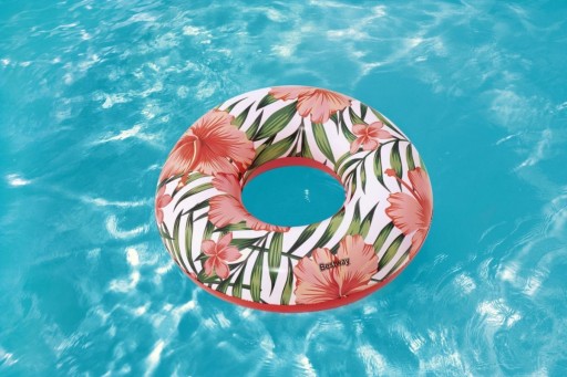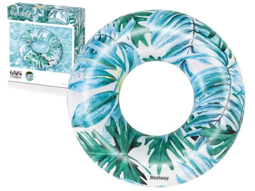 Bestway tropikalne koło kółko dmuchane na plażę na basen 119 cmKoło do pływania firmy Bestway z motywem rózowych kwiatów jest idealne dla dzieci powyżej 12 roku życia i dla dorosłych. Wytrzymały materiał z tworzywa PCV jest przeznaczony do wielokrotnego napełniania i opróżniania. Kółko niezbędne jest do pomocy przy pływaniu oraz zabaw w wodzie. Świetnie nadaję się zarówno nad morze czy jezioro, ale także na basen lub zabawy w ogrodzie. Koło Bestway to wspaniała propozycja dla osób lubiących wygodę i relaks.Cechy produktu:✅ Idealnie dzieci i dorosłych, sprawdzi się zarówno do nauki pływania, jak i odpoczynku na wodzie✅ Kolorowy i ciekawy wzór kwiatów, który przypadnie do gustu dzieciom i dorosłym✅ Wytrzymały materiał wykonany jest z PCV odporny na wodę morską.✅ Zajmuje mało miejsca, można go wszędzie zabrać na wakacje, basen czy jezioro.✅ Łatwy w nadmuchiwaniu, spuszczaniu powietrza oraz przechowywaniu.✅ Zawór uniemożliwiający przypadkowe spuszczenie powietrza zapewnia dodatkowe bezpieczeństwo✅ Zapakowane w ładne i poręczne foliowe opakowanieSpecyfikacja:Producent: BestwayWiek: 12+Wzór: różowe kwiatyW zestawie: kółko + łatka naprawczaŚrednica: 119cmMateriał: PCVGrubość materiału: 0,21 mmWaga: 0,65 kgWymiary opakowania: 20 x 20 x 4 cmKoło dmuchane do nauki pływania dla dziecka dla dorosłychKoło jest idealne zarówno dla dzieci od 12 roku życia jak i dla dorosłych, posiada odpowiedni rozmiar, zapewniający stabilność, a roślinny wzór kwiatów przypadnie do gustu każdemu, kto lubi wyróżniać się w tłumie.Zabawa w wodzie to jeden z najlepszych sposobów na zachęcenie Twojego dziecka do aktywnego spędzania czasu na świeżym powietrzu. Kółko zapewnia bezpieczeństwo podczas nauki pływania lub zabawy w wodzie. Wykonany jest z wytrzymałego materiału PCV, a w razie uszkodzenia, do zestawu dołączona jest łatka naprawcza.Dorośli docenią wygodę i stabilność koła, pozwalające na bezpieczny relaks i odpoczynek na wodzie zarówno na wakacjach nad morzem czy nad jeziorem lub w basenie.Zapakowane w kolorowe opakowanie idealnie nadaje się na prezent i zajmuje mało miejsca, co pozwala zapakować kółko na letni wyjazd.Ostrzeżenie:Do używania jedynie w wodzie, na głębokości, na której dziecko wyczuwa dno pod nogami oraz pod nadzorem osoby dorosłej.