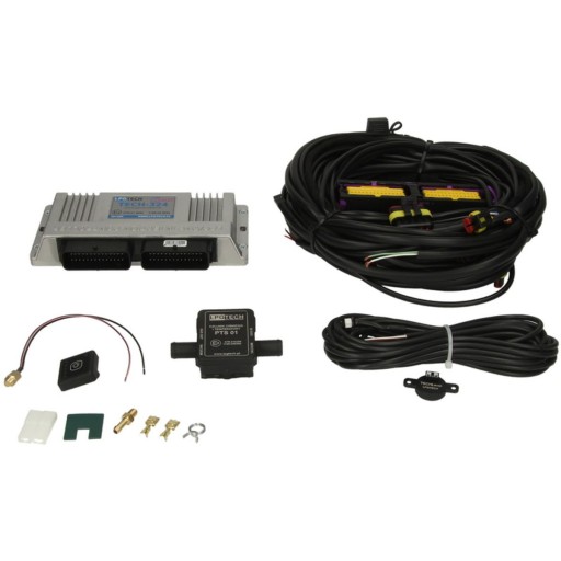 W skład zestawu MINI TECH-324 OBD wchodzą: - Sterownik wtrysku gazu TECH-324 OBD- Czujnik ciśnienia i temperatury PTS 01- Czujnik poziomu gazu TECHLevel- Centralka LED- Wiązka podłączeniowa- Schemat podłączenia sterownika TECH- Książeczka serwisowo-gwarancyjna Sterownik wtrysku gazu TECH-324 OBD Sterownik mikroprocesorowy z 56-pinową wiązką, przeznaczony do silników maksymalnie4-cylindrowych. Łączy zaawansowaną technologię z ergonomią - procesor sterujący autokalibracją, autoadaptacją oraz systemem ciągłego monitorowania i korekt zamknięty jest w aluminiowej obudowie o wymiarach 190x125x30 mm. Sterownik TECH-324 OBD posiada zintegrowany moduł OBD. - Obsługa wtrysku gazu do 4 cylindrów- Innowacyjny algorytm sterujący TECH z systemem autoadaptacji oraz algorytm STANDARD- Zintegrowany moduł OBD- Obsługiwane protokoły: ISO 15765-4 CAN (11 bit ID, 500 Kbaud); ISO 15765-4 CAN (29 bit ID, 500 Kbaud); ISO 15765-4 CAN (11 bit ID, 250 Kbaud); ISO 15765-4 CAN (29 bit ID, 250 Kbaud);ISO 14230-4 KWP (fast init, 10.4 Kbaud); ISO 14230-4 KWP (5 baud init, 10.4 Kbaud);ISO 9141-2 (5 baud init, 10.4 Kbaud)- Obsługa silników Valvetronic i Wankla- Autodiagnoza, wykrywanie błędów i usterek montażu- Pełne zabezpieczenie przeciwzwarciowe i przeciążeniowe- Złącze 56 pinów Czujnik ciśnienia i temperatury PTS 01 Czujnik, w którym pomiar temperatury gazu odbywa się bezpośrednio w strumieniu gazu (metoda zapewniającą bezbłędny pomiar). PTS 01 jest zintegrowany z czujnikiem ciśnienia, co pozwoliło wyeliminować lutowanie, czyniąc go jeszcze dokładniejszym. Czujnik poziomu gazu TECHLevel Odpowiada za pomiar ilości gazu w zbiorniku. Czujnik montowany jest na wielozaworze. Wyniki pomiarów przesyłane są poprzez sterownik LPG do przełącznika B/G wewnątrz kabiny pojazdu.Nie posiada elementów mechanicznych. Technologia pomiaru – Hall, zasilanie 12V, napięcie wyjściowe 0-5V. Zestaw znajduje się w solidnym opakowaniu, którego odporność na obciążenia została przetestowana podczas prób wytrzymałościowych.