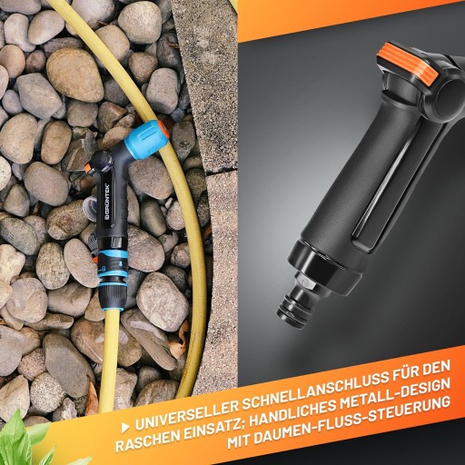 - Nieskomplikowane uruchomienie dzięki uniwersalnemu systemowi szybkiego podłączenia; deszczownica ogrodowa nadaje się do wszystkich rodzajów węży przy normalnym ciśnieniu wody w domu