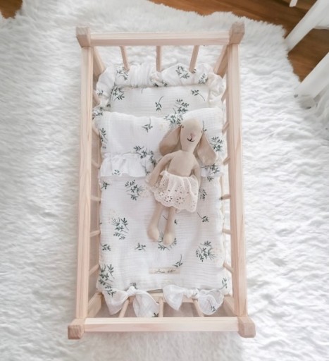 Kołyska / łóżeczko dla lalek z muślinowym kompletem pościeli "Summer meadow"