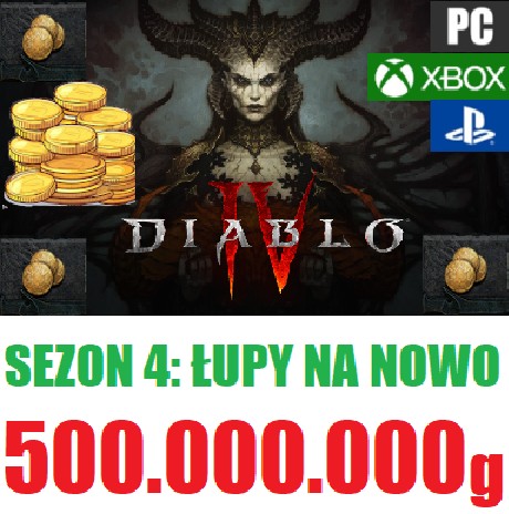 1 sztuka kup teraz = 500.000.000 GOLD (500mln złota - waluta złoto) w grze Diablo 4 Sezon 4 Sezon Łupy na Nowo "Loot Reborn S4 (nie dostarczam na hc hardkorze), dostępne wszystkie platformy: