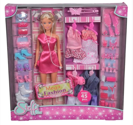 Wspaniały duży zestaw ubranek i akcesorów dla lalki Steffi, zawiera aż 45 elementów.