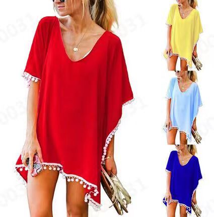 Outdoor duży rozmiar luźna bluzka plażowa jednokolorowa szyfonowa spódnica plażowa z frędzlami letnia odzież damska