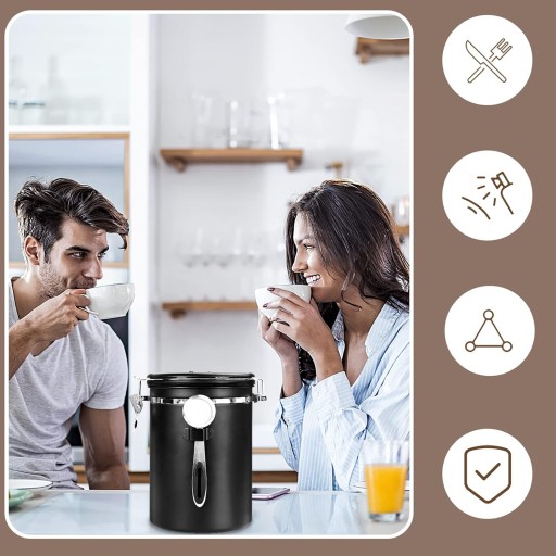 ☕Uniwersalny: nie tylko do przechowywania ziaren kawy, ale także do herbaty, cukru, kakao, płatków śniadaniowych, makaronów, płatków owsianych itp.
