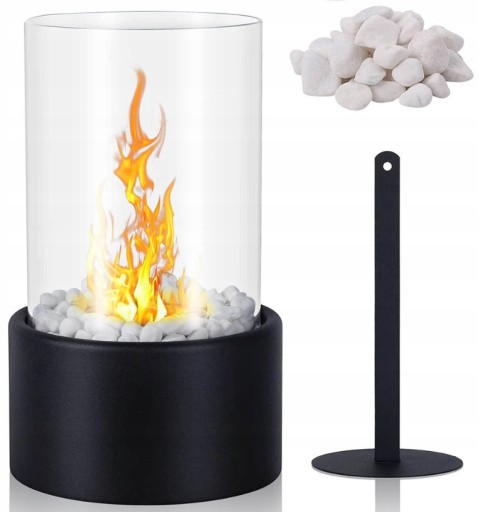 Klasyczny i elegancki design: kominek stołowy jest zaprojektowany z nowoczesnego czarnego metalu. Za przezroczystą i wyjmowaną szklaną rurą odporną na wysoką temperaturę można obserwować taniec płomienia 360°, co jest modne i ciekawe.