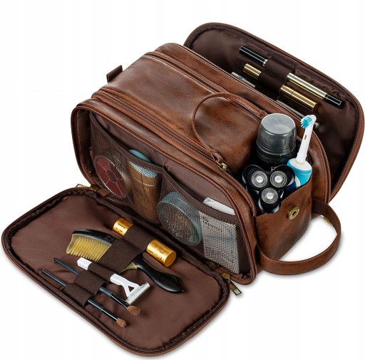 KOSMETYCZKA SKÓRZANA MĘSKA PODRÓŻNA WODOODPORNA