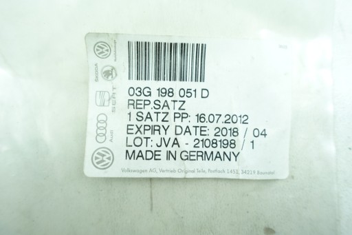 AUDI: 03G198051D CUPRA: 03G198051D GLASER: Z59739-00 REINZ: 15-42119-01 SEAT: 03G198051D SKODA: 03G198051D VW: 03G198051D