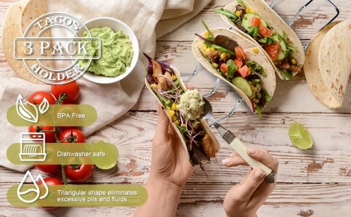 【Taco Holder】 3-pak stojaków na taco, mieści do 4 lub 3 tacos KAŻDY, idealny na TACO WTOREK, święta, wycieczki i weekendy.