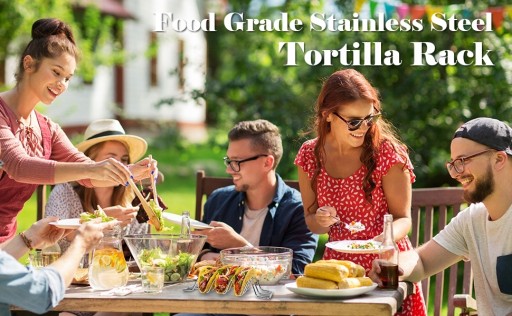 【Konstrukcja odporna na ciepło】 pozwala ustawić skorupę taco i umieścić ją w piekarniku do grillowania, aby uzyskać doskonałe przygotowanie, równomierne pieczenie i podgrzewanie. Zestaw można myć w zmywarce i jest łatwy do przechowywania. Uchwyty na taco sprawiają, że przygotowywanie tacos jest przyjemnością.