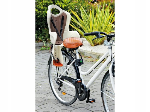 Fotelik rowerowy dziecięcy firmy HTP mocowany do ramy roweru za pomocą szybkozłączki.