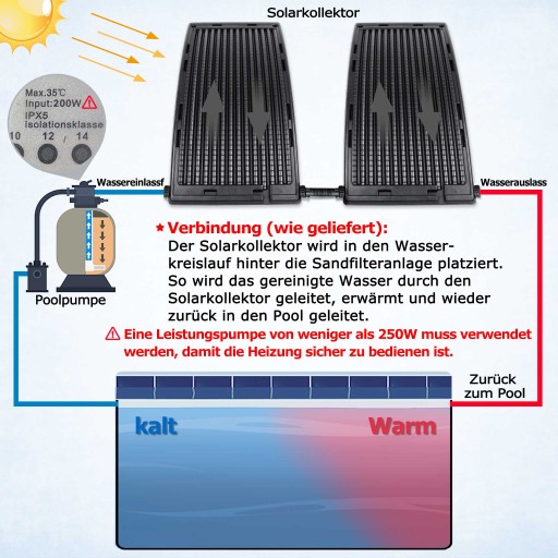 Czy widzisz temperaturę wody o 1, 2 lub nawet 3°C? Jest to możliwe dzięki temu kolektorowi słonecznemu. Kilka elementów można połączyć szeregowo, aby uzyskać wyższą moc grzewczą.