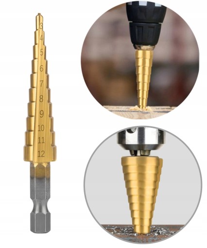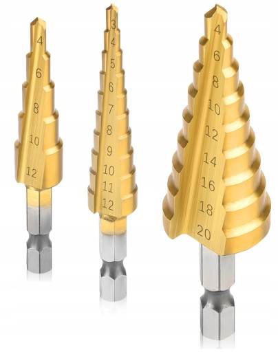 1️⃣ 3 x Szlifowane Wiertła Stożkowe (rozmiary: 4-12 mm, 4-20 mm, 4-32 mm)