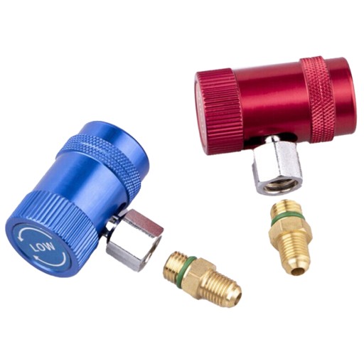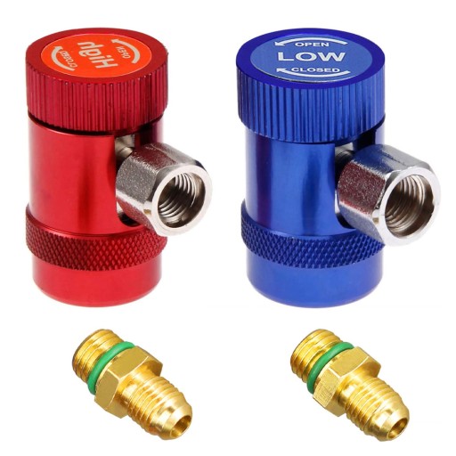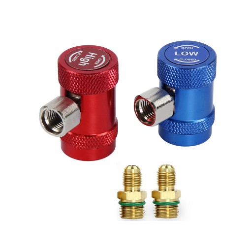 ✅【Unikalny design】: Adapter R1234yf z precyzyjnym zatrzaskiem i radełkowanym pierścieniem uchwytu dla łatwego dostępu; zdejmowany miedziany adapter dla łatwej konserwacji; górny i dolny radełkowany kolor dokładny. Zestaw do konwersji adaptera R1234YF, 1 czerwony dla wysokiego napięcia i 1 niebieski dla niskiego napięcia dla łatwej identyfikacji.