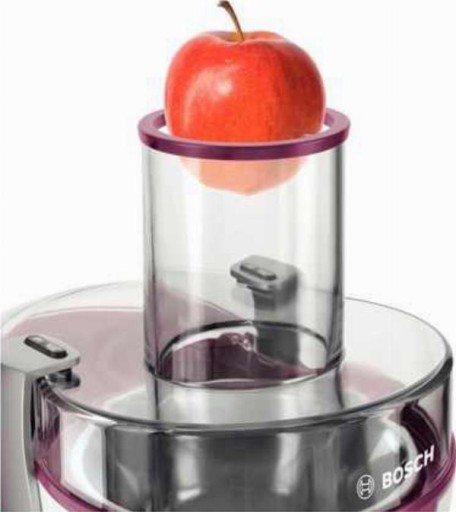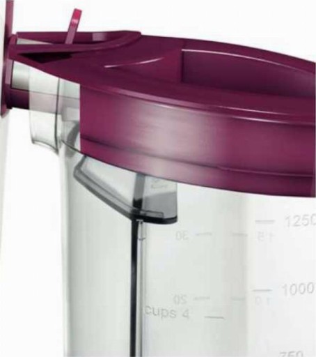 - załączone wyposażenie: szczotka do czyszczenia, sitko, popychacz produktów, pokrywa, pojemnik na miąższ, dzbanek