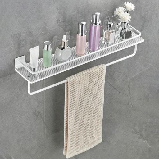[Materiał] Wieszak na ręczniki ścienne wykonany jest z grubego akrylu i stopu aluminium, który jest mocny, odporny na zużycie i wytrzymały. Dzięki modnemu wzornictwu i praktycznej funkcji przechowywania upiększa całą łazienkę.