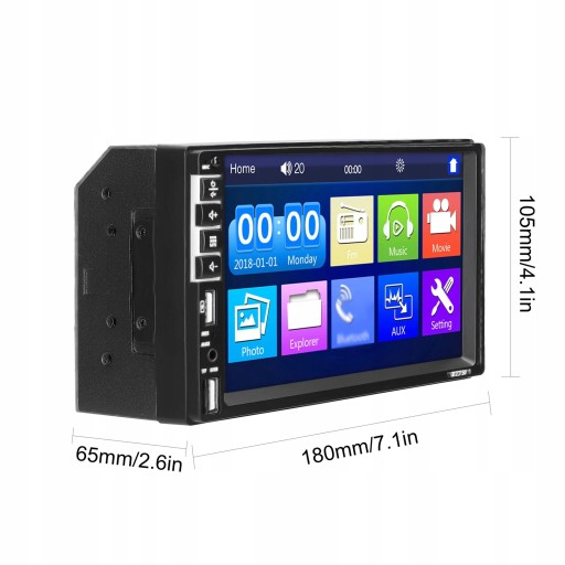 Dwudinowe samochodowe stereo 7-calowy monitor LCD z ekranem dotykowym Odtwarzacz BT MP5 Odbiornik radia samochodowego FM Obsługa łącza telefonicznego TF / USB / AUX-IN Połączenia w trybie głośnomówiącym Obraz cofania Sterowanie kierownicą (czarny)⭐Dane techniczne: ⭐Ekran: 7-calowy ekran dotykowy LCD ⭐Rozdzielczość: 800*480 ⭐BT: BT 5.0 ⭐Napięcie: 12.0V ⭐Moc wyjściowa: 60 W * 4 ⭐Pasmo radiowe: FM ⭐Częstotliwość radiowa: FM 87.5-108MHz ⭐Format audio: MP3 / WMA / AAC / OGG / WAV / APE / FLAC ⭐ Format wideo: MKV / AVI / MOV / MP4 / ASF / FLV / PMP / MPEG / VOB / WMV ⭐ Format obrazu: JPEG / BMP / PNG / GIF ⭐ Język: Angielski, chiński uproszczony, hiszpański, portugalski, rosyjski, włoski, niemiecki, francuski, japoński, polski, turecki, arabski, czeski, hebrajski 16.3oz ⭐Rozmiar opakowania: 210*165*120mm/8.3*6.5*4.7in ⭐Waga opakowania: 640g/22.6oz ⭐Lista pakowania: ⭐1 * samochodowe stereo ⭐1 * pilot zdalnego sterowania ⭐1 * kabel zasilający ⭐1 * kabel głośnikowy ⭐1 * Podręcznik użytkownika (angielski)