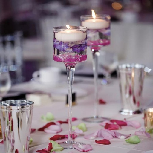 Cylindryczny kształt świecznika szklanego może być interesującą bazą do stworzenia aranżacji z klimatycznymi świecami, jak i tych wykonanych ze świeżych lub sztucznych kwiatów. Dzięki odpowiednim dodatkom, takim jak: kolorowy piasek, płatki róż, szklane kulki itp., naczynie zachwyci świeżością i oryginalnością.
