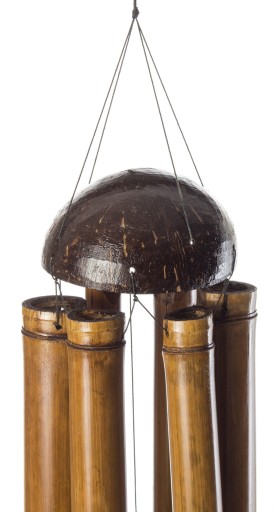 Gong wietrzny kokos wykonany z bambusa. Idealnie nadaje się na taras. balkon lub altanki itp. Powiew wiatru sprawia że z bambusów wydobywa się bardzo przyjemny i odprężający dźwięk.
