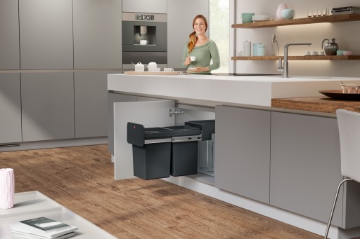 Nowy system segregacji odpadów przewidziany do zabudowy, z możliwością całkowitego wysunięcia.