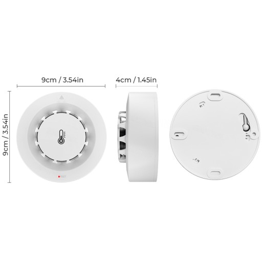 Detektor posiada wbudowane czujniki, które dokonują pomiaru wilgotności i temperatury. Dane te można odczytać w aplikacji Tuya. Są one szczególnie przydatne w tworzeniu scen np. włączenie klimatyzatora, gdy temperatura przekroczy 25°C. Oprócz tego możliwe jest ustawienie alarmów po przekroczeniu ustawionych limitów Rh i °C i zmiana jednostek na °F.
