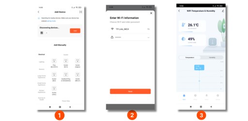 Krok 3. Naciśnij przycisk na czujniku przez 5 seekund. Aplikacje pokaże "Urządzenia do dodania" a czujnik automatycznie połączy sie z siecią WiFi.