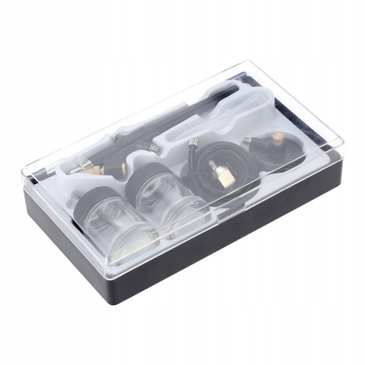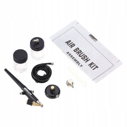 Zawiera drobny aerograf z główką, wąż PU o długości 5 stóp, z pokrywą przymocuj słoik 22 cm3, regulator napędu i adapter (wąż powietrza 1/4 "od kompresora do mniejszego węża aerografu).