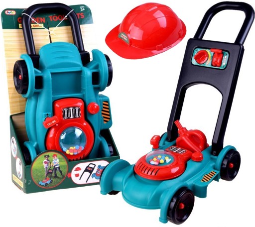 Duża kosiarka chodzik pchacz dla dzieci z kanistrem i kaskiem ochronnym