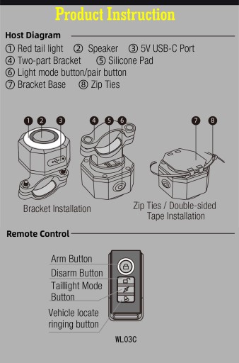 Lampki wykorzystują najnowszą technologię i zapewniają szeroką gamę ekonomicznych rozwiązań spełniających większość potrzeb w zakresie ostrzegania rowerzystów. Pełnią funkcję tylnej lampy rowerowej, światła hamowania, dzwonka i syreny antykradzieżowej(przy minimalnym poruszeniu roweru załącza się syrena alarmowa. Pilotem można włączyć i wyłączyć funkcję alarmu, zmienić tryb świecenia lampki lub użyć sygnału dźwiękowego by ostrzec osoby przed Nami.