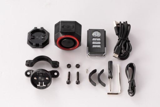 * Alarm: 110 dB. Po włączeniu pilotem funkcji antykradzieżowej włącza się czujnik ruchu. Przy próbie poruszenia rowerem włączy się alarm, najpierw pojedynczy sygnał, a później ciągły. Alarm można wyłączyć pilotem.