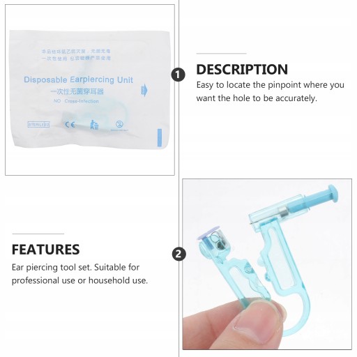 Te elementy do przekłuwania uszu są wytwarzane przez profesjonalnego producenta urządzeń medycznych w celu wyeliminowania możliwej infekcji krzyżowej i stanów zapalnych podczas przekłuwania uszu. Mechan Zaprojektowano tak mechanicznie, że można łatwo wykonać samodzielnie. Łatwa obsługa i lokalizacja punkt, w którym chcesz, aby otwór był dokładnie..