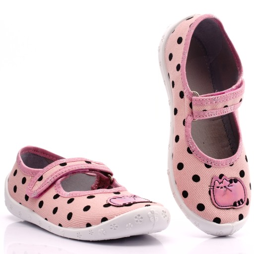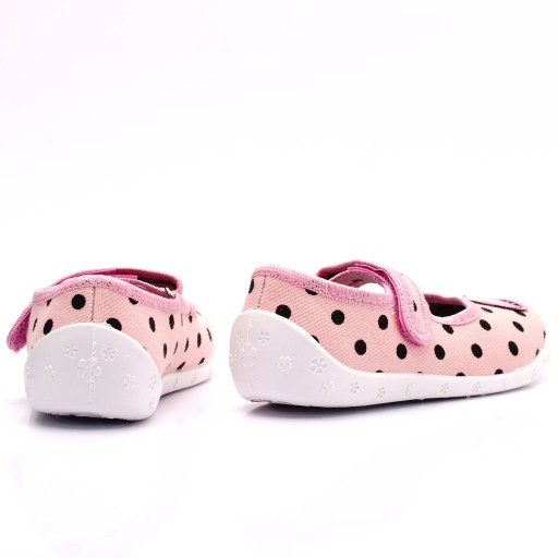 Komfortowe obuwie dziecięce wykonane z bawełnianych tkanin oraz elastycznej podeszwy. Polecane jest jako obuwie na zmianę lub po domu, lecz podczas suchych, ciepłych dni może być użytkowane także na zewnątrz.