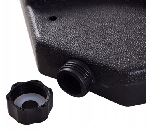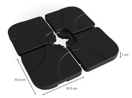 W każdym z 4 elementów podstawy znajduje się odkręcany korek, po jego wykręceniu należy napełnić podstawę wodą lub piaskiem. Wypełnienie panelu wodą daje nam obciążenie 60 kg, wypełnienie piaskiem - 80 kg, a gdy wypełnimy wodą i piaskiem - 95 kg. Pełne wypełnienie wpłynie na utrzymanie i ustabilizowanie parasola nawet z dużą czaszą.
