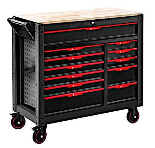- W przeciwieństwie do większości naszych modeli warsztatowych, wózek narzędziowy 79619 wyposażyliśmy w solidny blat wykonany z wysokiej jakości, twardego drewna.
