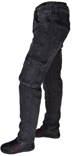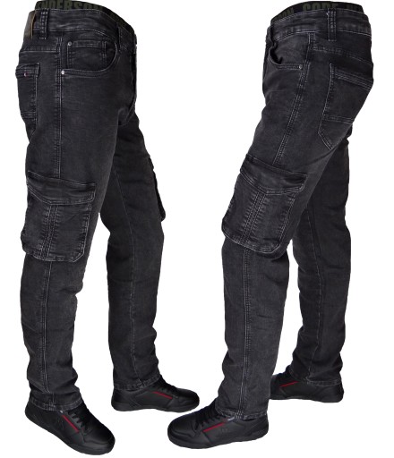 Spodnie Męskie Bojówki Czarne Przecierane Rozciągliwe (stretch) Pojemne Kieszenie