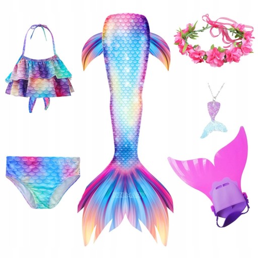 Dzieci dziewczyny ogon syreni do pływania kostium syreny Cosplay dzieci strój kąpielowy Fantasy Bikini na plażę może dodać Monofin Fin Halloween