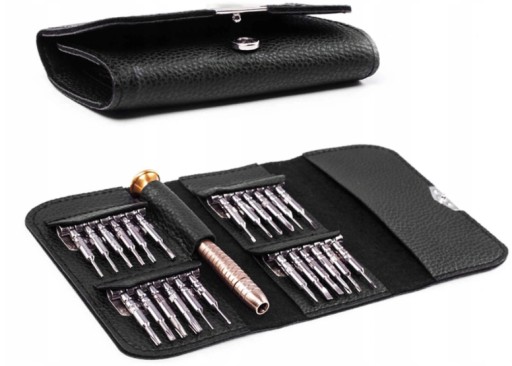 Przenośny zestaw wkrętaków precyzyjnych idealnie nadaje się do pracy z różnego typu urządzeniami, elektroniką i sprzętem GSM, a także przy okularach i zegarkach.