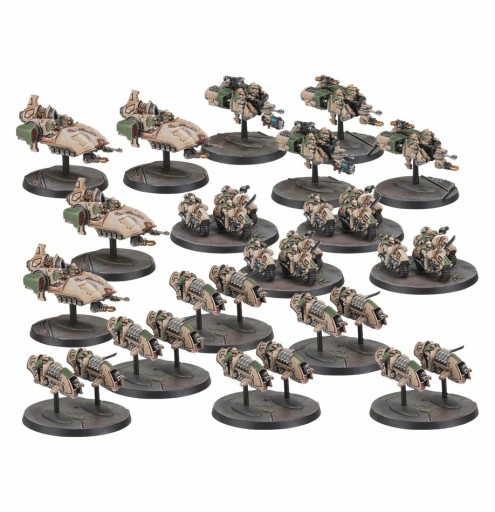 This multipart plastic kit builds 32 epic scale Legiones Astartes miniatures, split over 18 bases, for your games of Legions Imperialis. You'll find hovering Javelins and smaller Land Speeders with a variety of weaponry, alongside Outrider bikers and Scimitar jetbikes. Unleash these fast-moving attack assets to outflank your opponent and bring effective firepower to where it's least expected.