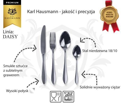 Sztućce ze stali nierdzewnej KARL HAUSMANN wykonane zostały z materiałów o bardzo wysokiej jakości - stali nierdzewnej 18/10.