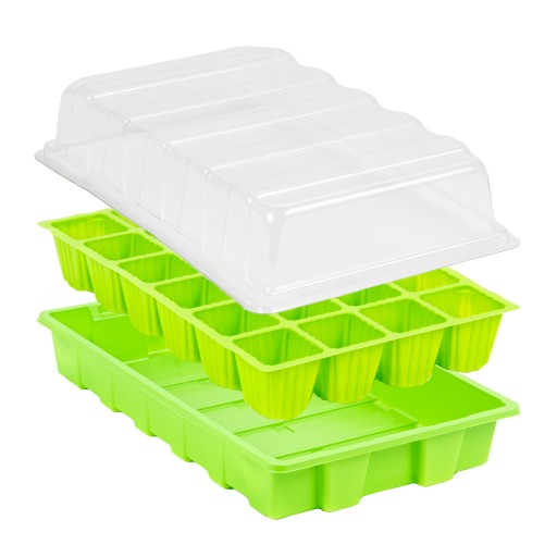 Miniszklarenka wyprodukowana została z wysokiej jakości tworzywa sztucznego. W jej wnętrzu utrzymuje się stała temperatura: nie musisz obawiać się o wysychanie plonów lub ich więdnięcie. Produkt jest odporny na uszkodzenia, ale i elastyczny, dzięki czemu bez problemu wyjmiesz bryły korzeniowe z komórek.
