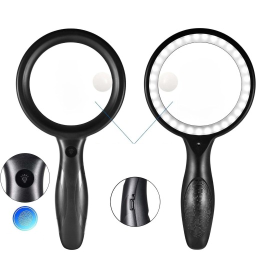 Lupa do czytania ma 33 wbudowane światła LED z 3 trybami jasności i podwójnymi soczewkami 30X w tym samym czasie. Lupa do czytania ma interfejs USB, który można ładować w dowolnym momencie. Podświetlane szkło powiększające może być używane nieprzerwanie przez 26 godzin w warunkach słabego oświetlenia. Lupa ze światłem może działać przez 8 godzin w warunkach silnego oświetlenia, może być używana nieprzerwanie przez 6 godzin w warunkach bardzo słabego oświetlenia.