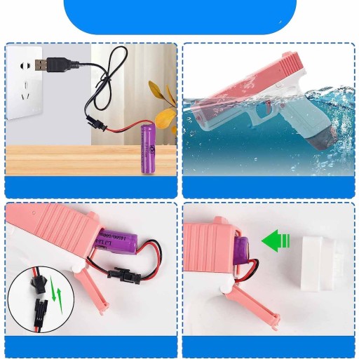 - ✅Nazwa: Automatyczny pękający elektryczny pistolet na wodę + bateria litowa 500 mah 3,7 V + dwa wkłady wodne + kabel USB