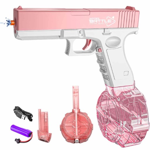 ЭЛЕКТРИЧЕСКИЙ АВТОМАТИЧЕСКИЙ ВОДЯНОЙ ПИСТОЛЕТ С ДВУМЯ ЖУРНАЛАМИ GLOCK РОЗОВЫЙ