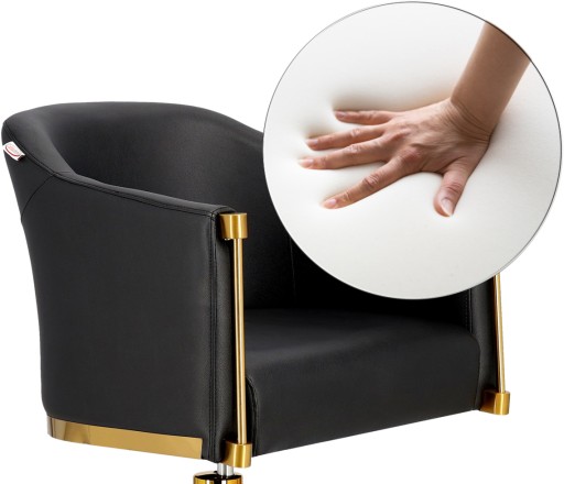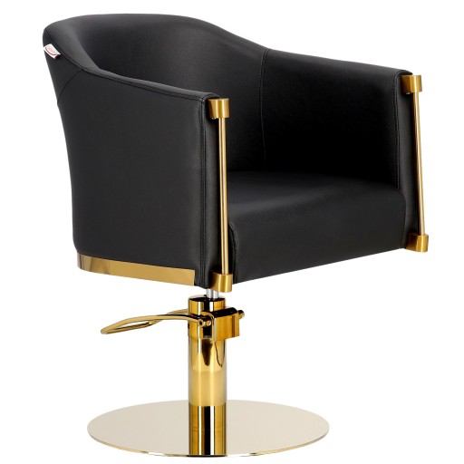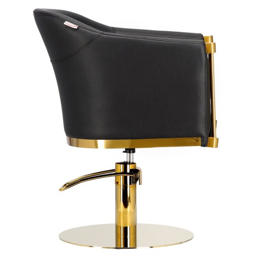 Fotel charakteryzuje się eleganckim i ergonomicznym designem, który pozwala na wygodną pracę fryzjera oraz relaks klientów.