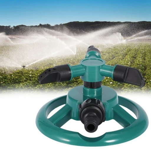 - Zraszacz obrotowy 3-ramienny z trwałego tworzywa sztucznego na solidnej podstawie.