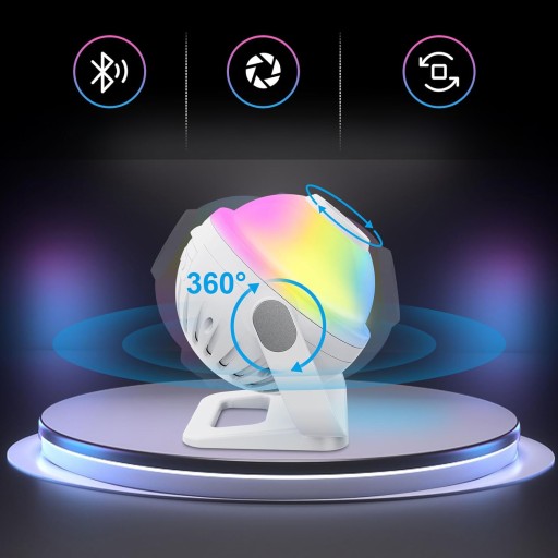 Projektor galaktyczny posiada funkcję obrotu o 360°, co pozwala na pełne pokrycie sufitów, ścian i podłóg pięknymi projekcjami gwiazd i planet. Dzięki tej funkcji możesz dowolnie ustawić kierunek projekcji, aby uzyskać najlepszy efekt w swoim pomieszczeniu.